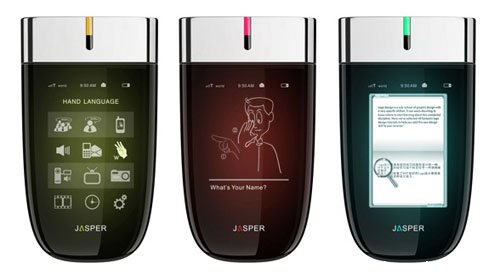 变换器(Transducer)概念手机让人类的巴别塔倒下了!优异的内建翻译系统能将对话译成你或通话对象所设定的语言,让语言不再是你和受话方沟通的障碍。其他功能包括卫星导航系统、透明液晶萤幕、目眩神迷的变色效果、以及能与视听障朋友进行通话等。听上去很像天方夜谭,但若能成真又何妨? 「数位扫描」功能能翻译书籍内容、海报及菜单等,或是将文字转换成声音输出。我觉得这支手机的圆滑轻巧外型比较吸引我。