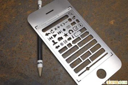 随着iPhone的发展,越来越多的软件开发者投入到iPhone App的开发行列当中,而这款软件界面设计小助手应该能帮上些忙。这块看似普通的铁板按照比例将iPhone手机界面上常见的图标印制在铁板版面上,通过它的帮助,你一定能更高效地设计出软件界面。