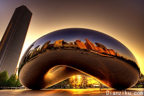 这是一座位于芝加哥千禧公园的巨大雕塑。这款名为云门(Cloud Gate)的雕塑的主体造型类似于一个椭圆,高33英尺,长66英尺,宽42英尺,重约110吨。它的昵称叫做“豆子(The Bean)”,这种描述似乎更加形象。