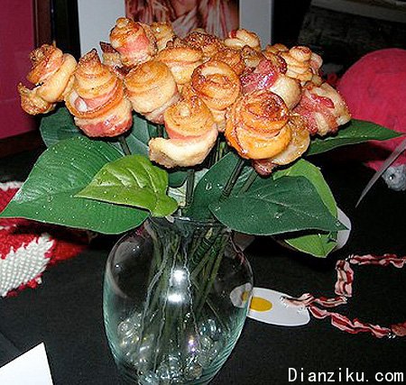 可口,芳香和创造性的玫瑰花,做出真正的腊肉花