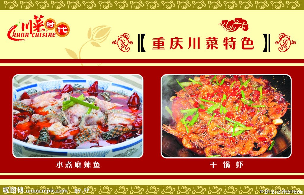 川菜(SiChuan style dishes )是中国八大菜系之一,素来享有"一菜一格,百菜百味"的声誉,它历史悠久,源远流长。据史书记载,川菜起源于古代的巴国和蜀国。川菜原来只流行于巴蜀地区,川菜在全国的流行开始于80年代改革开放之后,邓小平同志对川菜的发展有很大贡献。 来源:点子库网站