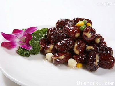 除夕尾声,酒足饭饱之后,吃几个糯米枣看看电视。枣象征红火、甜蜜。又因为它的形状,所以糯米枣在中国美食文化里代表着甜甜蜜蜜,团圆美满。另外,上面淋的桂花与“贵”和“华”谐音,寓意富贵荣华。