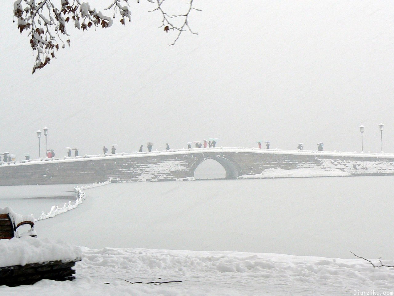 诗中的一句“断桥荒藓涩”,从中可知断桥原是一座苔藓斑驳的古老平板石桥。大雪初霁,原来苔藓斑驳的古石桥上,雪残未消,似有些残山剩水的荒涩感觉,这也就潜埋下了断桥残雪这西湖上独特景观的伏笔。