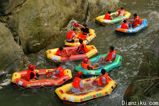 沩山漂流景区对外营业后,因其前所未有的刺激性和趣味性,受到游客的广泛好评,被游客誉为“中华第一漂”。沩山漂流景区位于长沙市宁乡县沩山乡祖塔小龙潭,景区交通便利,距长沙市区仅95公里,距著名的千年古刹——密印寺仅15公里,漂流河道长5.6公里,落差近200米,属于大落差强刺激的双人自助漂流,漂流河道两岸奇峰陡立,苔藓满石,起伏跌宕,险峻无比。沩山漂流无论是两岸风景的优美程度,还是河道的惊险刺激程度,在国内都是一流的;特别是在漂流河道的中部,有一段长约一公里的连续险滩区,几十个大落差和特大落差接二连三的展现在游客面前,考验着游客的心理承受极限,其惊险性和趣味性在全国都是极少见的。